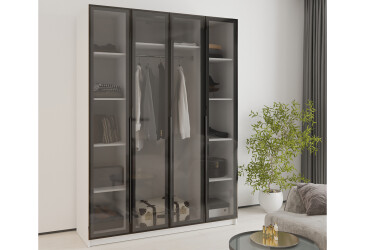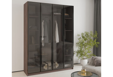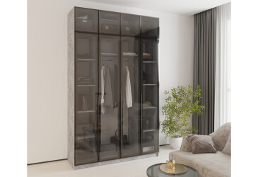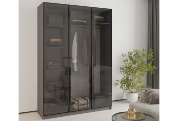 - MebelStar, скло, ламінована ДСП, петлі з дотягувачами, штанга і полиці, сучасний, антрацит, 3D.