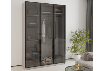 - MebelStar, скло, ламінована ДСП, петлі з дотягувачами, штанга і полиці, сучасний, сіра мишка, 3D.