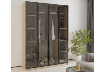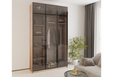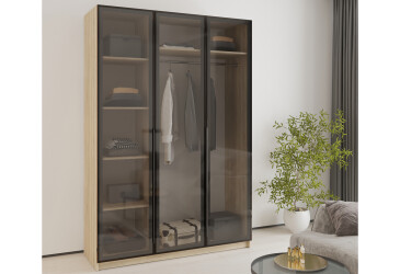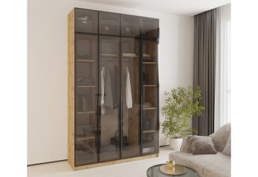 - MebelStar, скло, ламінована ДСП, петлі з дотягувачами, штанга і полиці, сучасний, дуб бурштиновий, 3D.