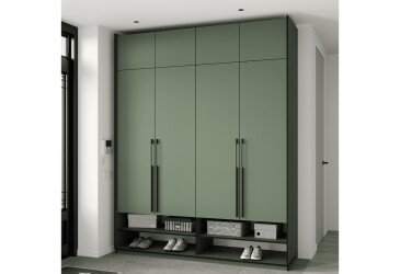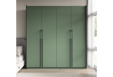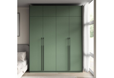 - Moreli, ламінована ДСП, ламінована ДСП, петлі з дотягувачами, регульовані ніжки, овальна чорна штанга, штанга і полиці, сучасний, зелений димчастий, 4D.