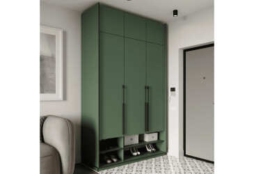- Moreli, ламінована ДСП, ламінована ДСП, штанга і полиці, мінімалізм, зелений димчастий, 3D.