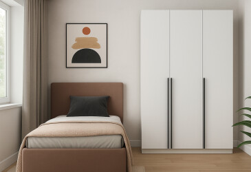 - Київський стандарт, ламінована ДСП, ламінована ДСП, система відкривання Tip-On, штанга і полиці, мінімалізм, 6D.