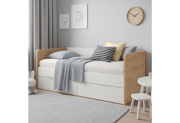 - 48 см, 90х200, із вкладом, без матраца, MiroMark, глянцева ДСП, ламінована ДСП, модерн, дуб крафт / білий, висувна шухляда, висувна шухляда.