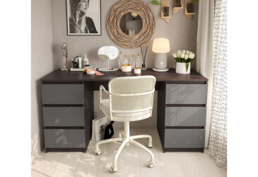 - Moreli, ламінована ДСП, ламінована ДСП, мінімалізм, висувний ящик, антрацит / дуб аппалачі.