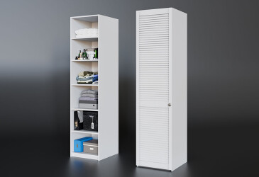 - VIP-master, фарбована МДФ, ДСП, петлі з дотягувачами, штанга і полиці, мінімалізм, білий, 3D.