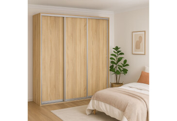 Оптимальні габарити залежать не тільки від розмірів приміщення, але й кількості дверей. Наприклад, стандартні 2-дверні модульні шафи-купе досягають завширшки 100-200 см, глибина варіюється між 45-60 см.