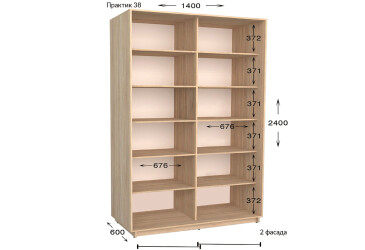 - MiroMark, скло, глянцева ДСП, ламінована ДСП, штанга і полиці, мінімалізм, дуб крафт / білий, 2D.