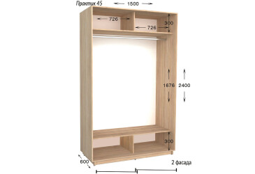 - MebelStar, ДСП, скло, ДСП, штанга і полиці, модерн, дуб сонома, 2D.