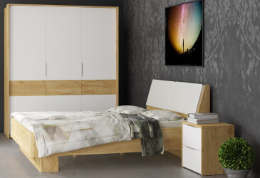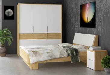 - 160х200, Perfect Home, глянцева ДСП, ламінована ДСП, сучасний, білий глянець / дуб грандсон, з чотиридверною шафою.