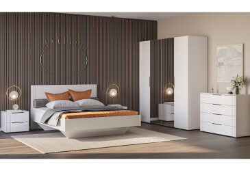 - 160х200, MiroMark, ламінована ДСП, ламінована ДСП, телескопічні напрямні повного висуву, петлі з дотягувачами, сучасний, білий, з чотиридверною шафою.