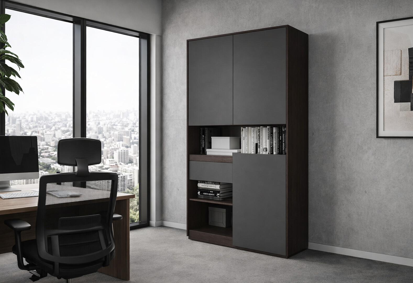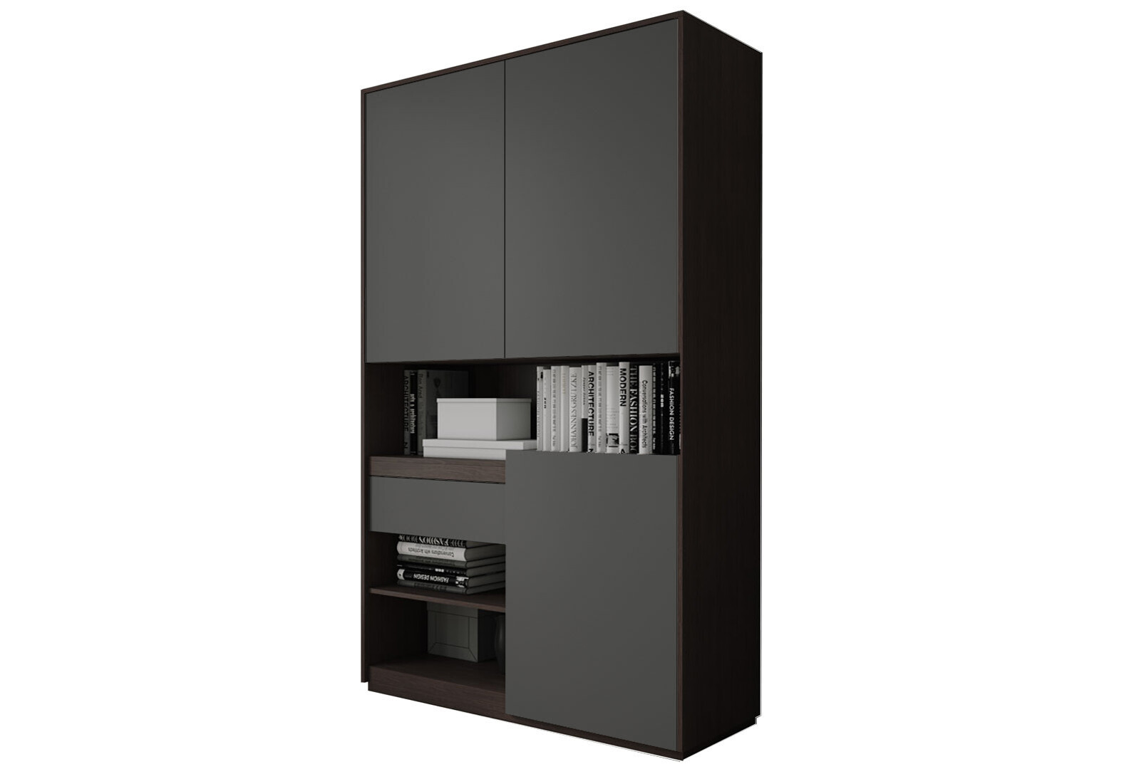 Пенал Moreli RS-1 з полицями, дверцятами та шухлядою 124 см венге магія антрацит