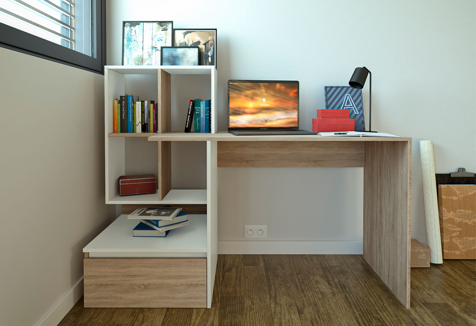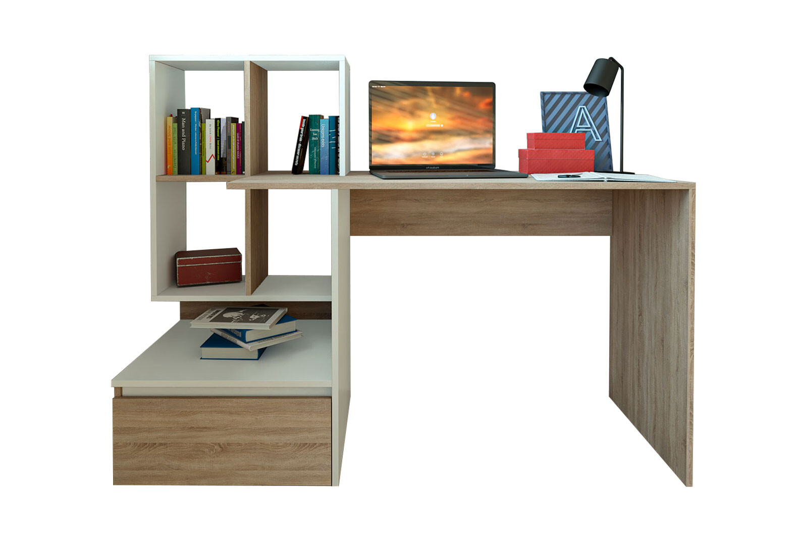 Стіл письмовий Moreli ST0005 145x52 см з шухлядою та боковими полицями дуб сонома / білий