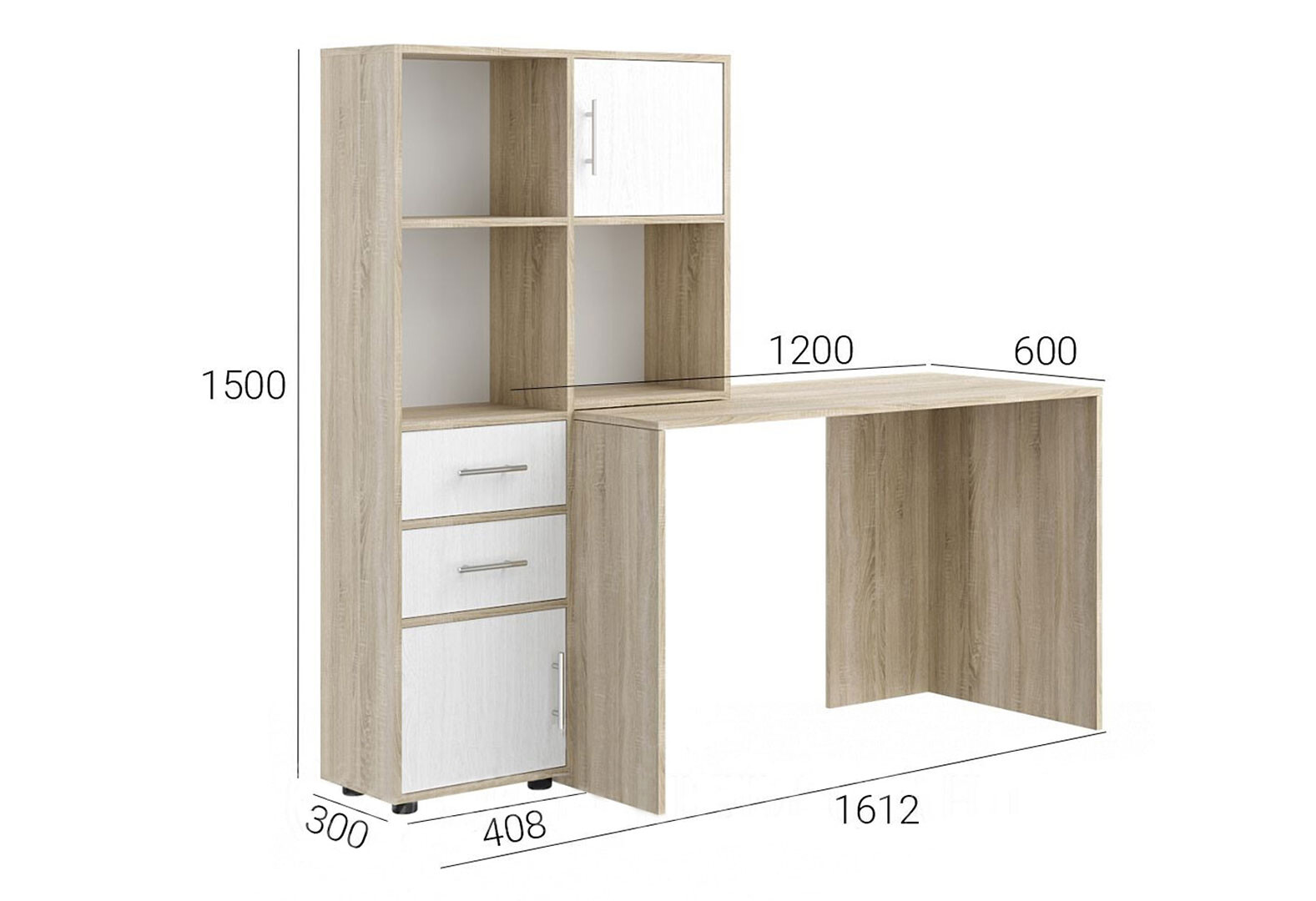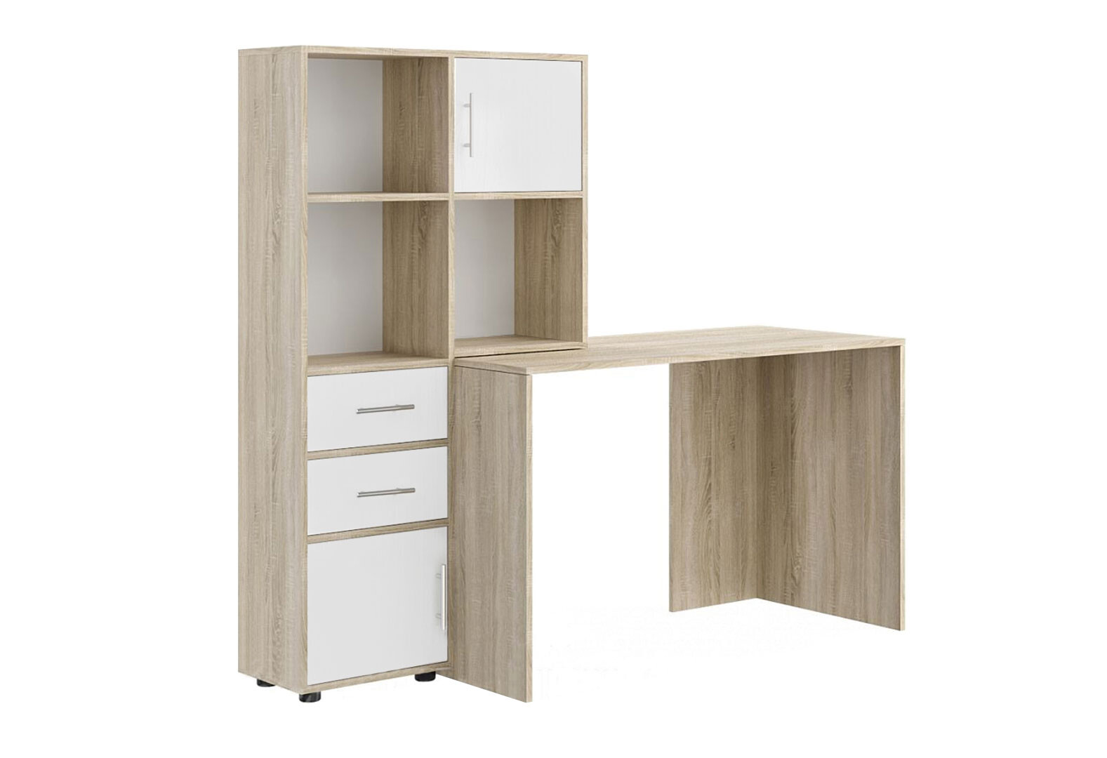 Стіл комп'ютерний Київський стандарт КС-05 160x60 см з надставкою і стелажем дуб сонома / німфеа альба, збірка ліва