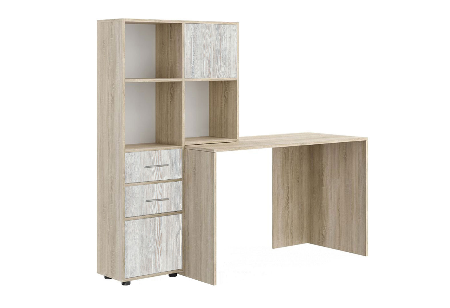 Стіл комп'ютерний Київський стандарт КС-05 160x60 см з надставкою і стелажем дуб сонома / сосна натті, збірка ліва