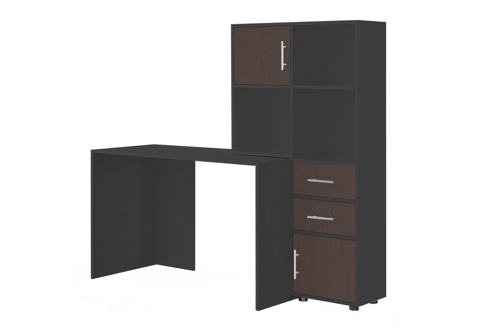 Стіл комп'ютерний Київський стандарт КС-05 160x60 см з надставкою і стелажем антрацит / венге, збірка права