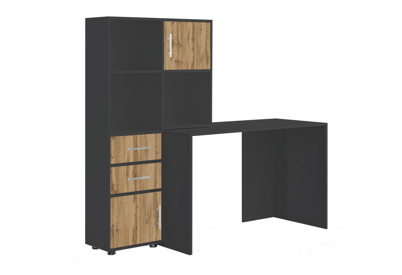 Стіл комп'ютерний Київський стандарт КС-05 160x60 см з надставкою і стелажем антрацит / дуб аппалачі, збірка ліва