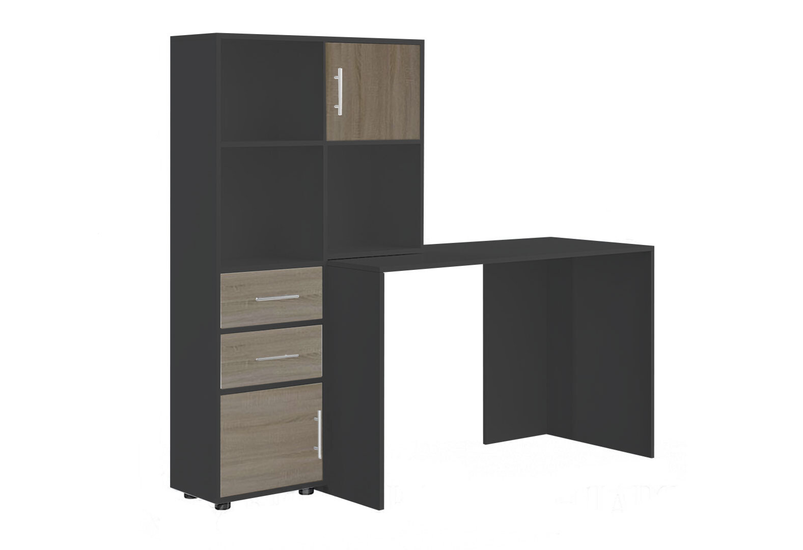 Стіл комп'ютерний Київський стандарт КС-05 160x60 см з надставкою і стелажем антрацит / дуб сонома трюфель, збірка ліва