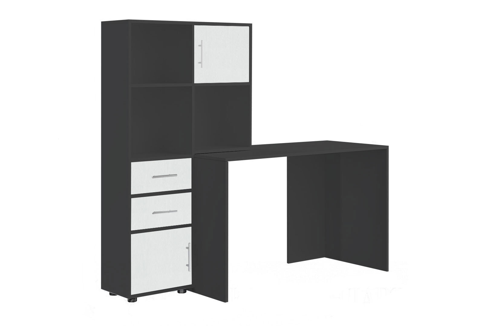 Стіл комп'ютерний Київський стандарт КС-05 160x60 см з надставкою і стелажем антрацит / білий структурний new, збірка ліва