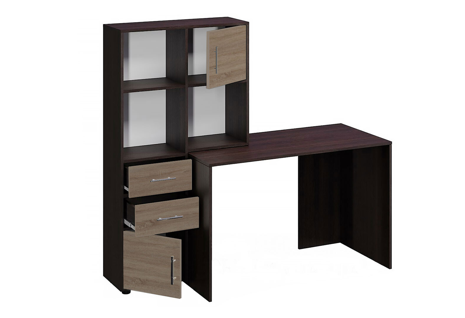 Стіл комп'ютерний Київський стандарт КС-05 160x60 см з надставкою і стелажем венге / дуб сонома трюфель, збірка ліва