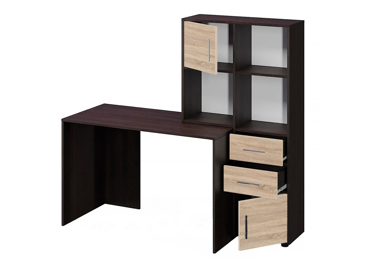 Стіл комп'ютерний Київський стандарт КС-05 160x60 см з надставкою і стелажем венге / дуб сонома, збірка права
