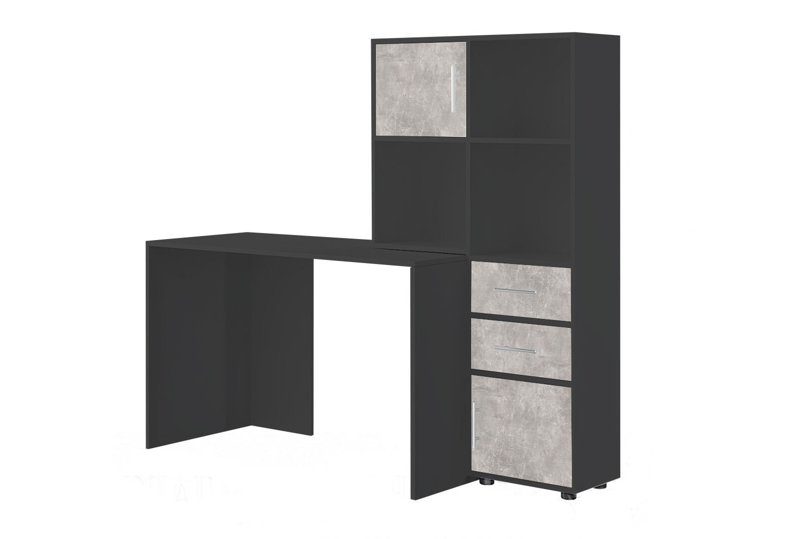 Стіл комп'ютерний Київський стандарт КС-05 160x60 см з надставкою і стелажем антрацит / бетон, збірка права