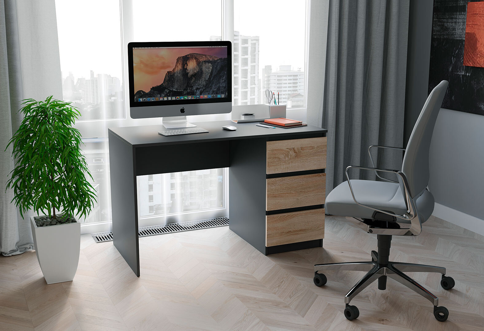 Стіл письмовий Moreli Т224 120x60 см з шухлядами справа, антрацит / дуб сонома
