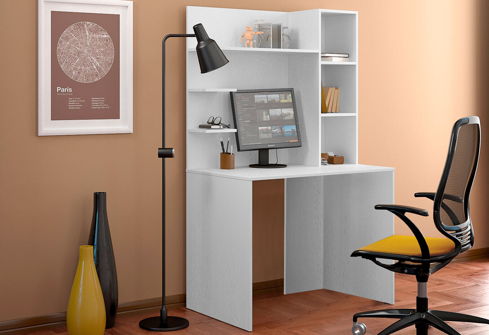 Стіл комп'ютерний Київський стандарт КС-03 100x60 см з надставкою білий структурний new збірка права