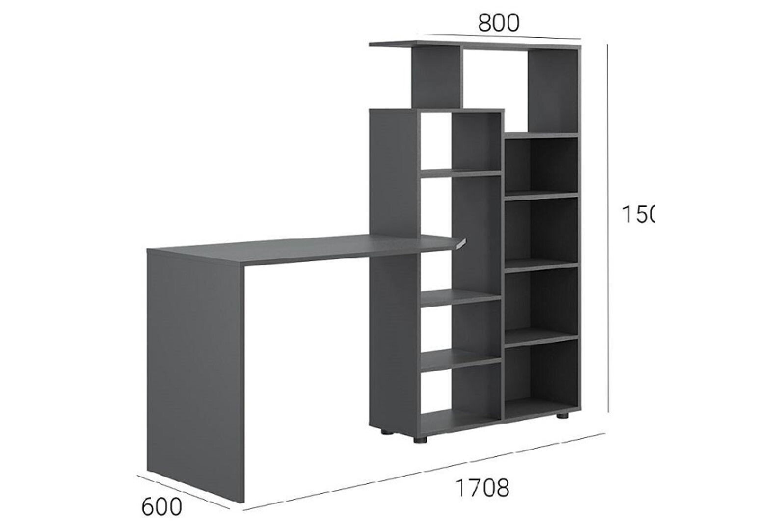 Стіл комп'ютерний Київський стандарт КС-08 171x60 см зі стелажем Колір корпусу: антрацит, збірка права