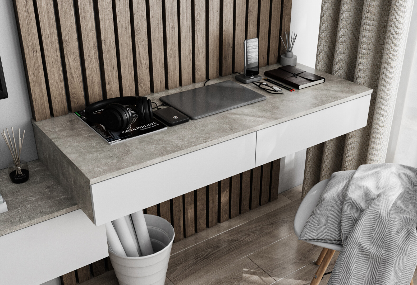 Стіл письмовий Moreli Т222 підвісний з 2 шухлядами 120x50 см бетон / білий