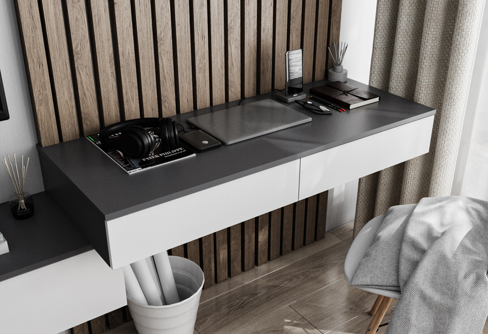 Зображення 1 - Стіл письмовий Moreli Т222 підвісний з 2 шухлядами 120x50 см антрацит / білий