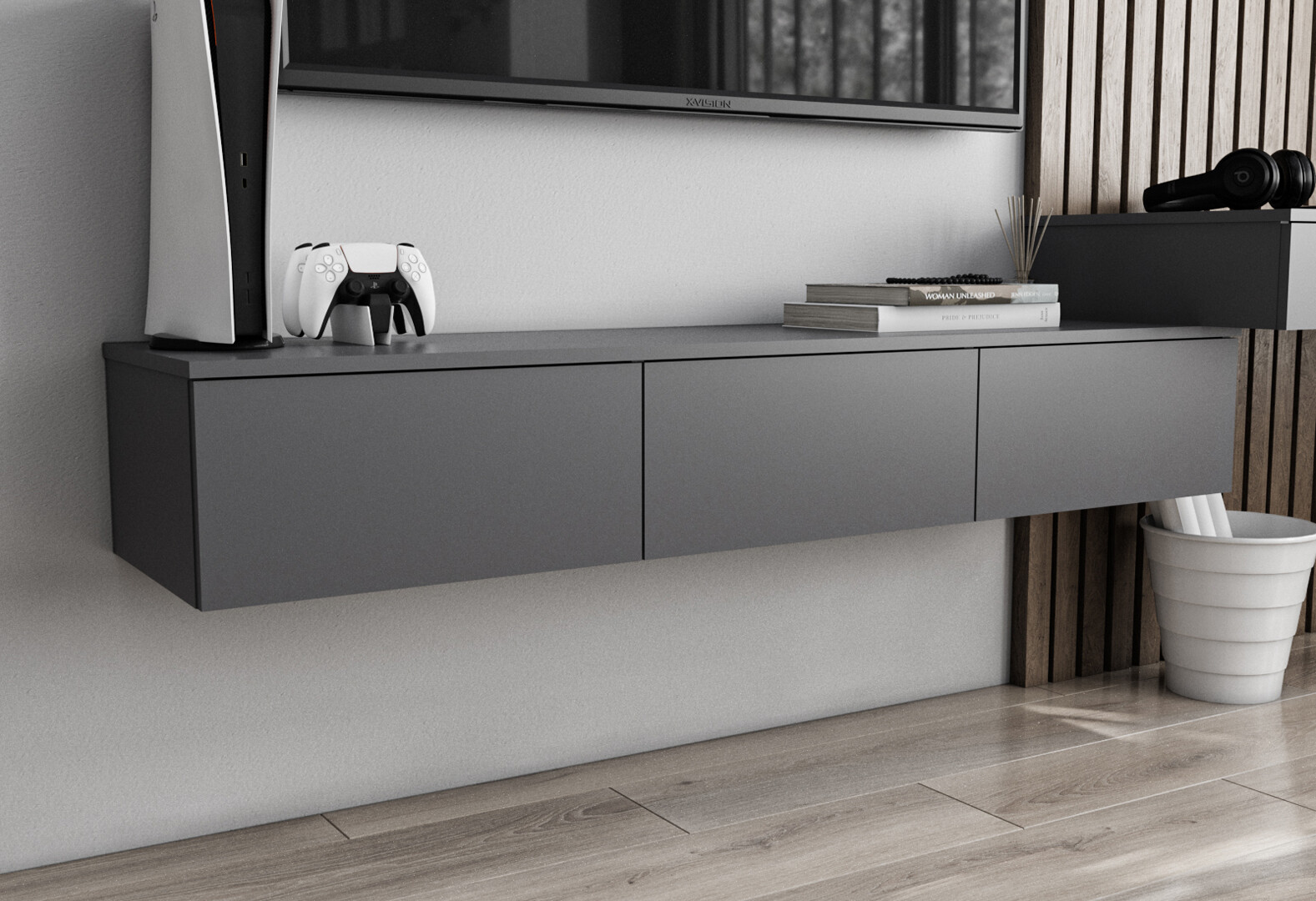 Тумба під ТВ Moreli Т221 підвісна з 3 шухлядами 150 см антрацит