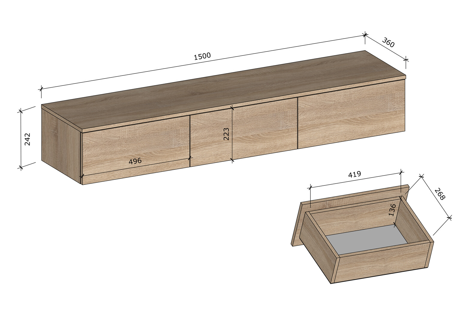 Тумба під ТВ Moreli Т221 підвісна з 3 шухлядами 150 см дуб аппалачі / білий