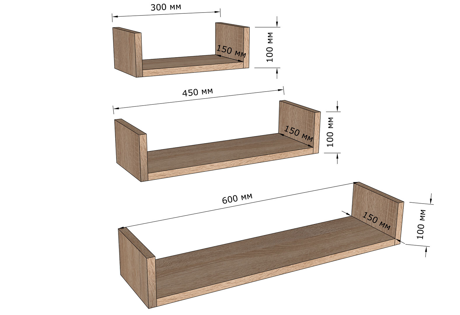 Полиці Moreli GТ0037 3шт / 30 см, 45 см, 60 см, бетон