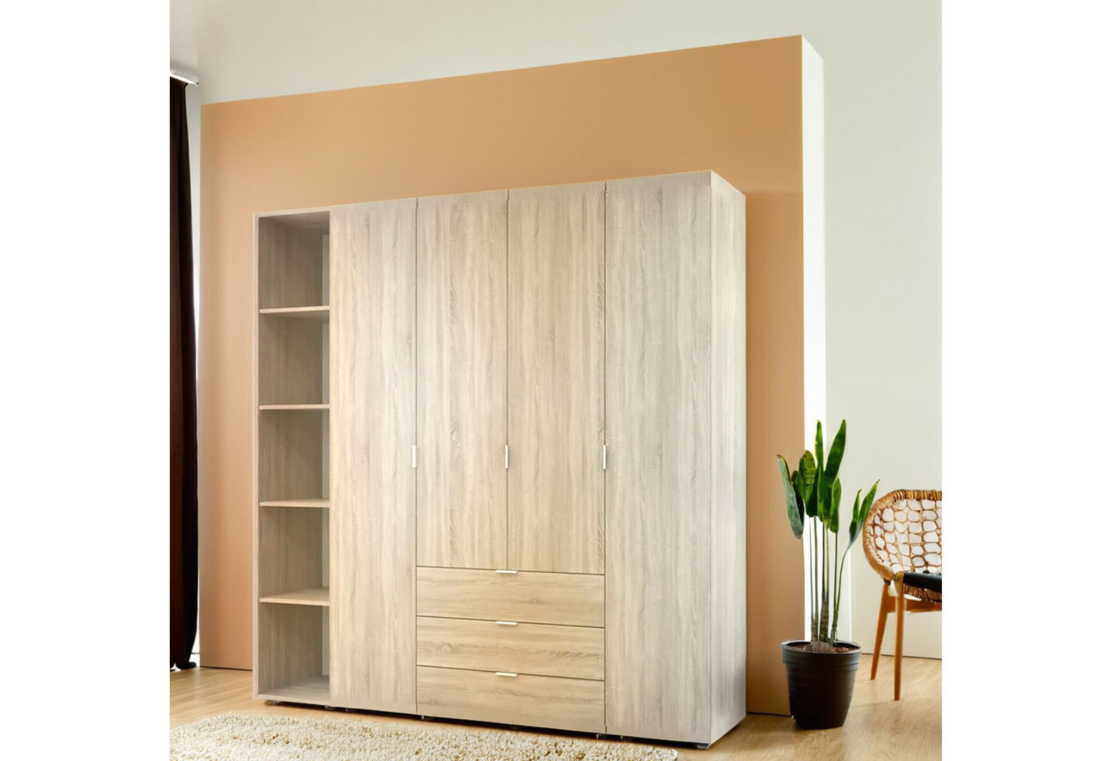 - Шафа Doros Гелар 4 ДСП 4-дверна з 3 шухлядами та етажеркою 193 см Дуб Сонома