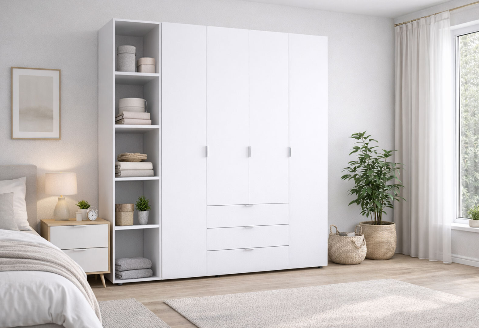 - Шафа Doros Гелар 4 ДСП 4-дверна з 3 шухлядами та етажеркою 193 см Білий