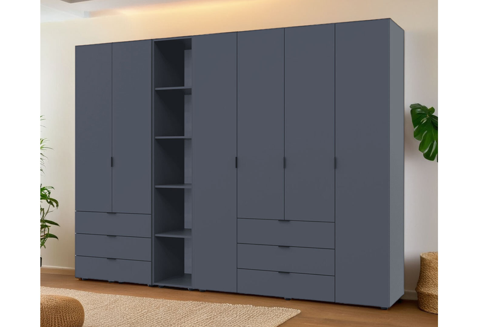 Шафа Doros Гелар ДСП 2- та 4-дверна з шухлядами та етажеркою 271 см Графіт