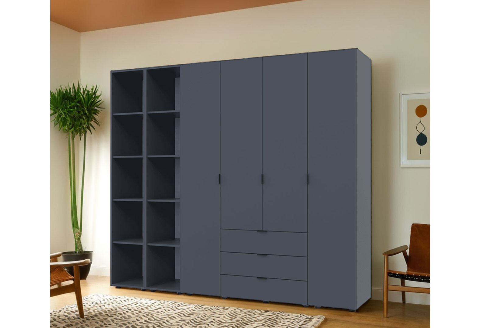 - Шафа Doros Гелар 4 ДСП 4-дверна з 3 шухлядами та 2 етажерками 231 см Графіт