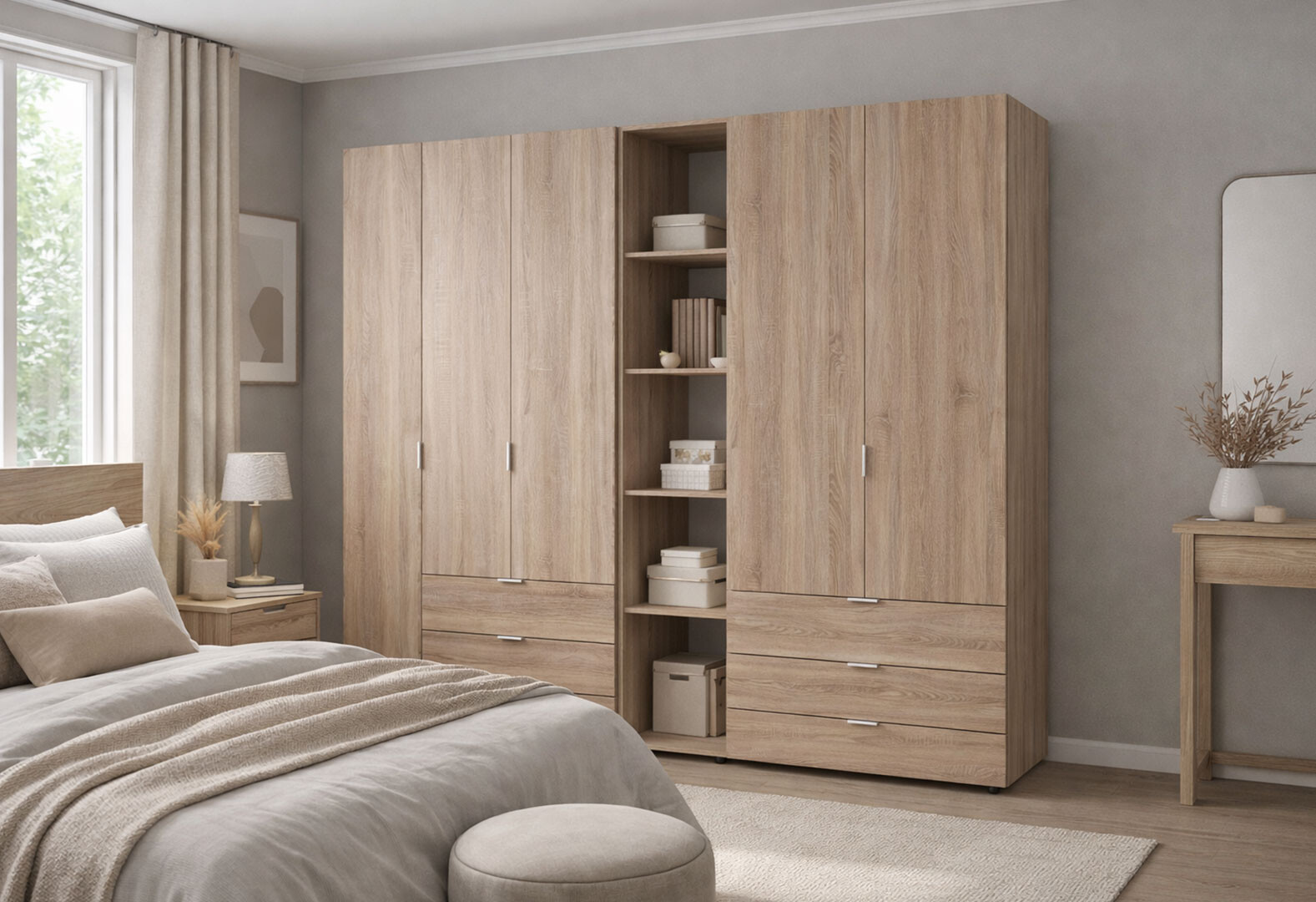 - Шафа Doros Гелар ДСП 2- та 3-дверна з шухлядами та етажеркою 232 см Дуб сонома