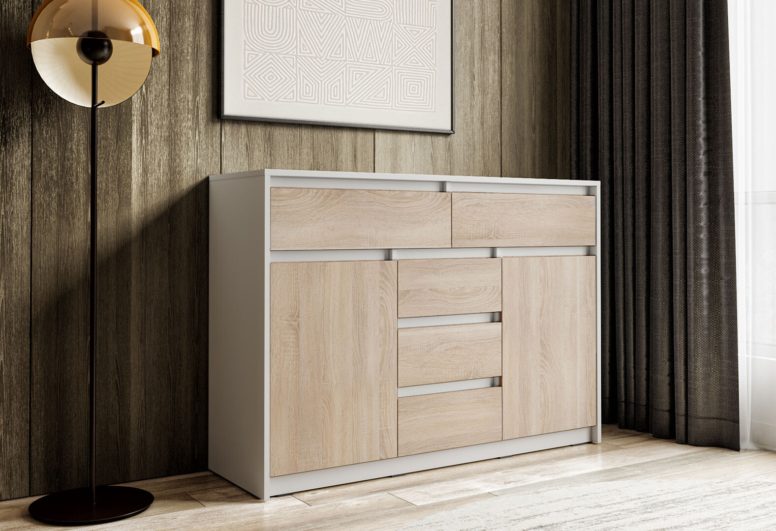Комод Moreli Т227 з дверцятами і шухлядами 127 см білий / дуб сонома