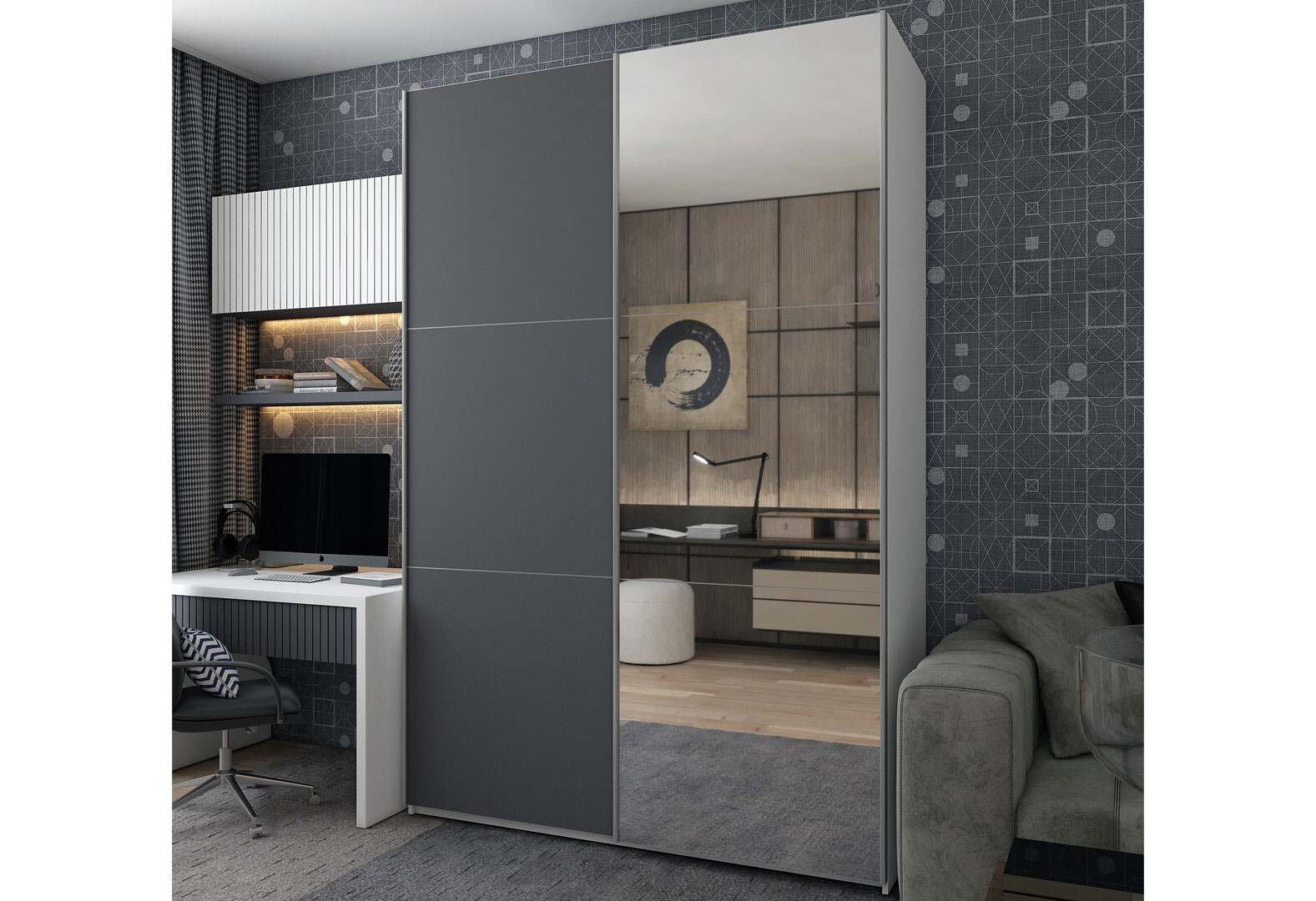Шафа-купе Doros G-Caiser / Джі-Кейзер 2-дверна з дзеркалом 160 см, білий / графіт