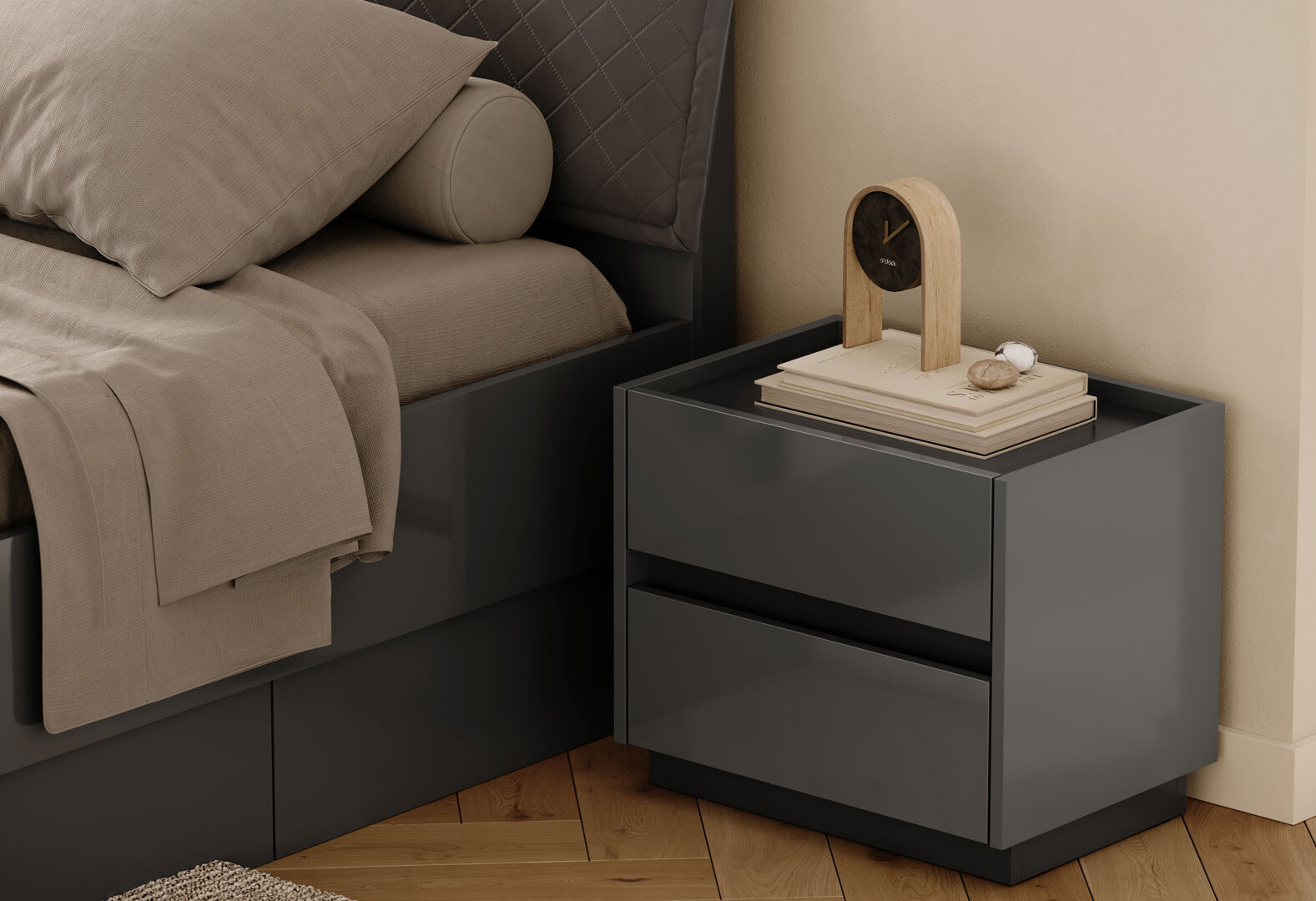 Тумба приліжкова MiroMark Тео з 2 шухлядами 50 см, мат антрацит / мат графіт