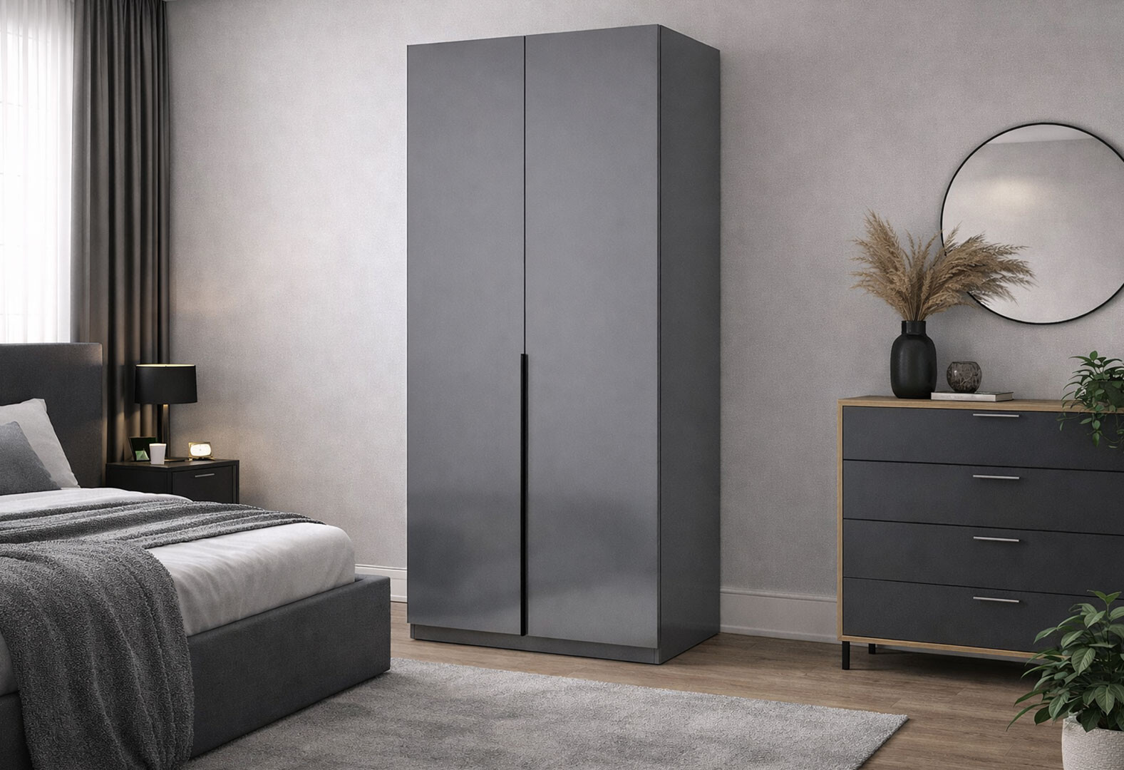 - Шафа MiroMark Тео 2-дверна 90 см, мат антрацит / мат графіт