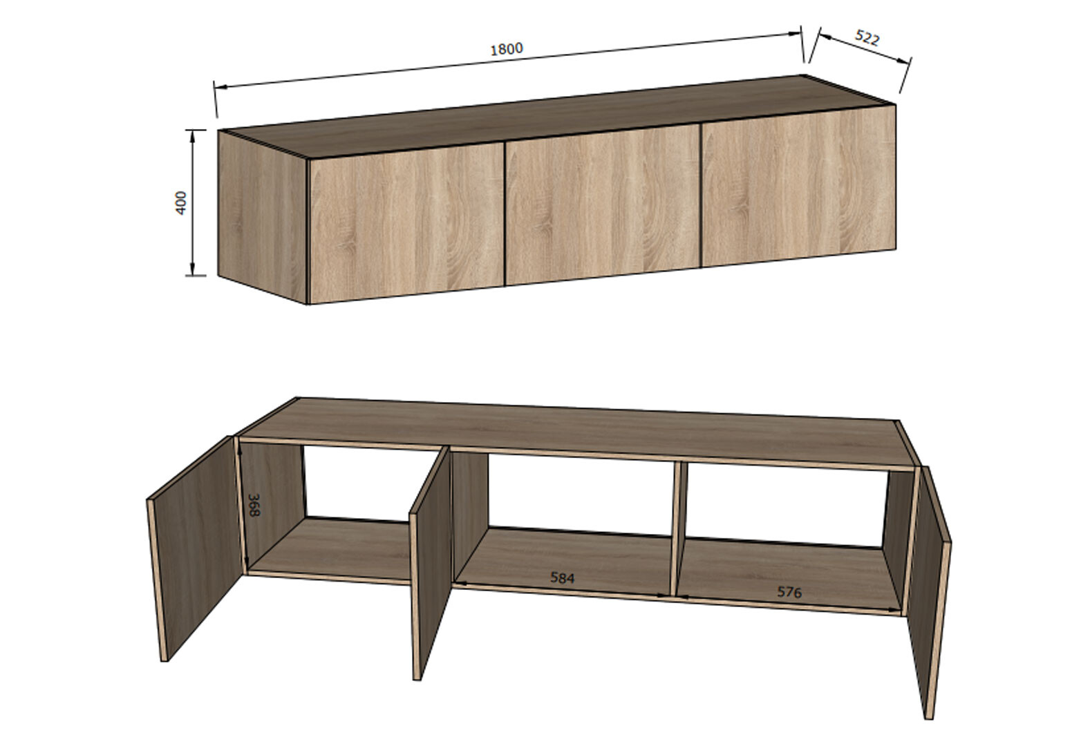 - Антресоль Moreli Ліберті (STA-0027) 3-дверна 180 см, бетон