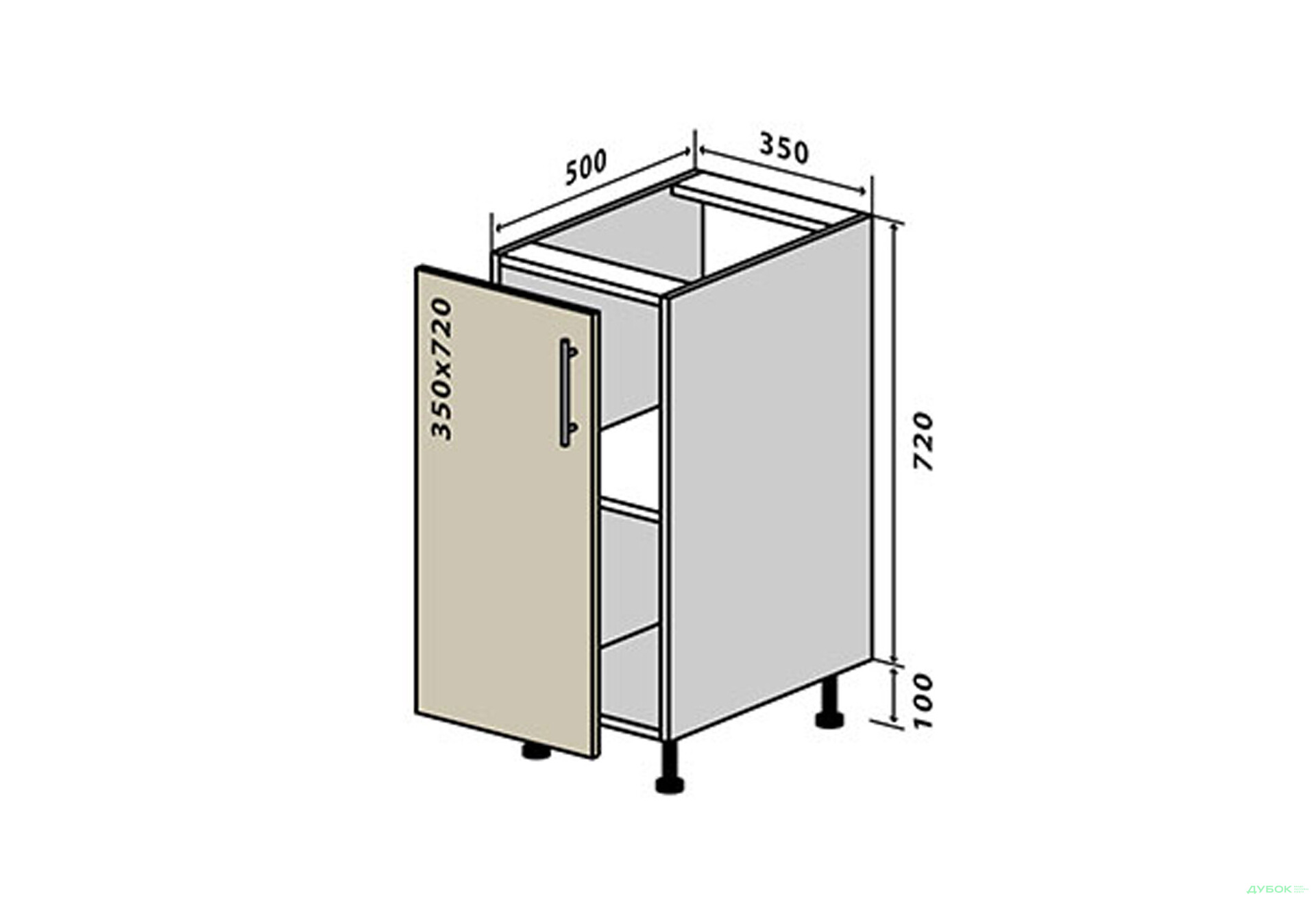 - Розмір: компактні габарити (ширина 35 см, висота 82 см, глибина 50 см) дозволяють зручно розмістити тумбу навіть у невеликих кухнях.
