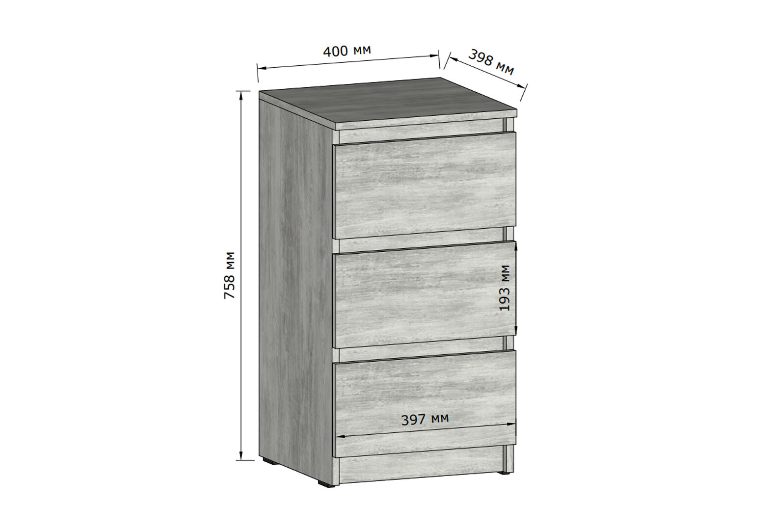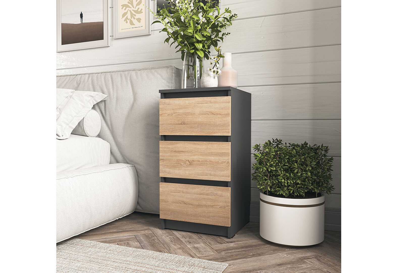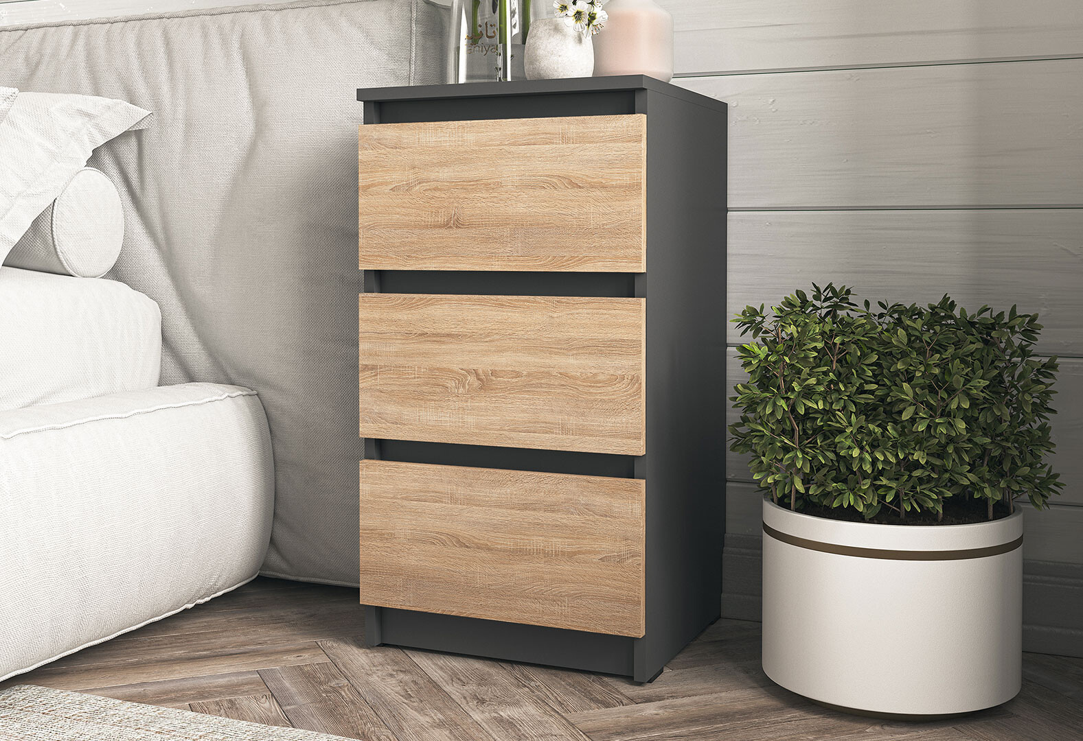 Комод Moreli Т 216 з 3 шухлядами 40 см антрацит / дуб сонома