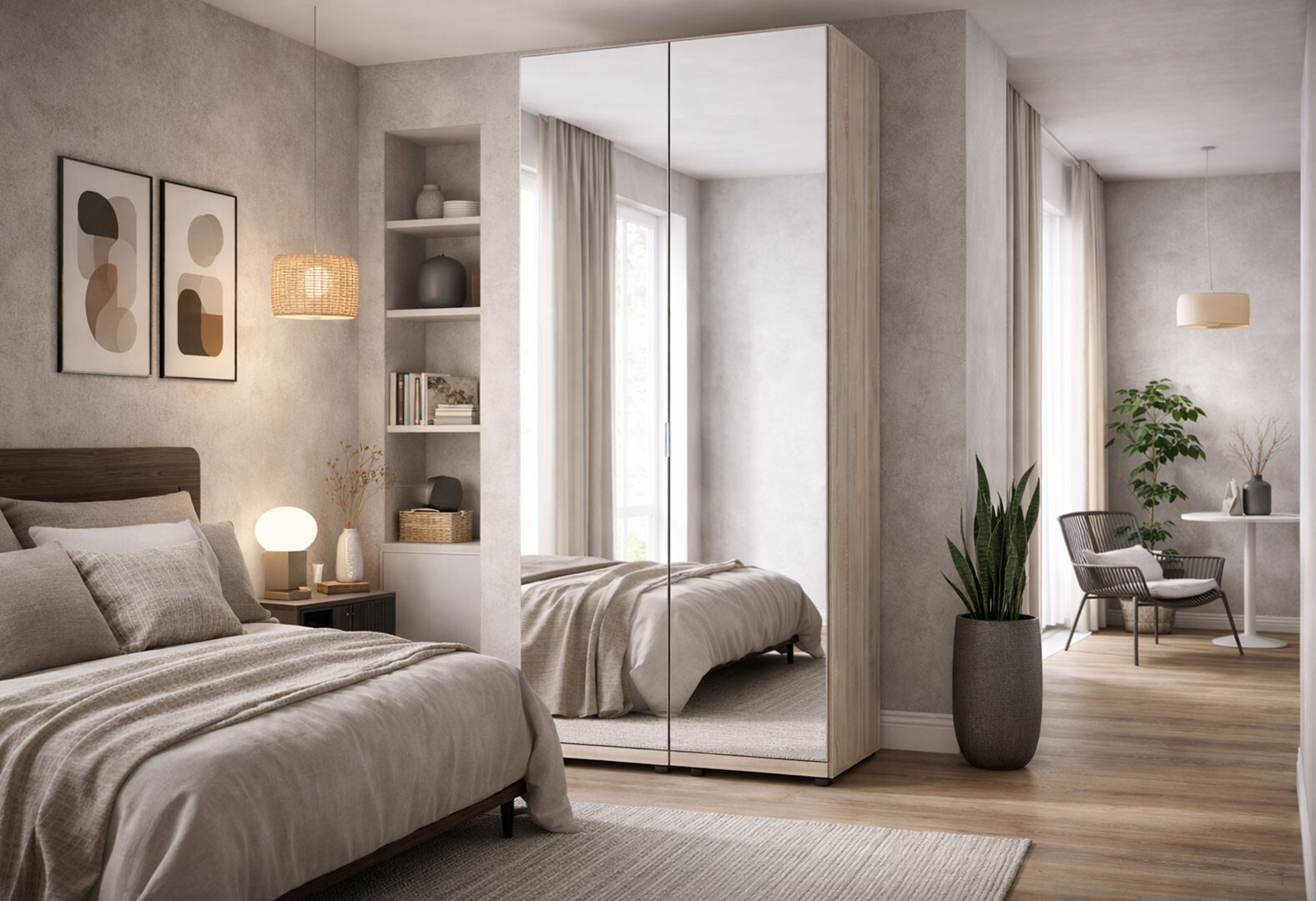 - Шафа Doros Гелар 2-дверна з дзеркалом 78 см Дуб сонома