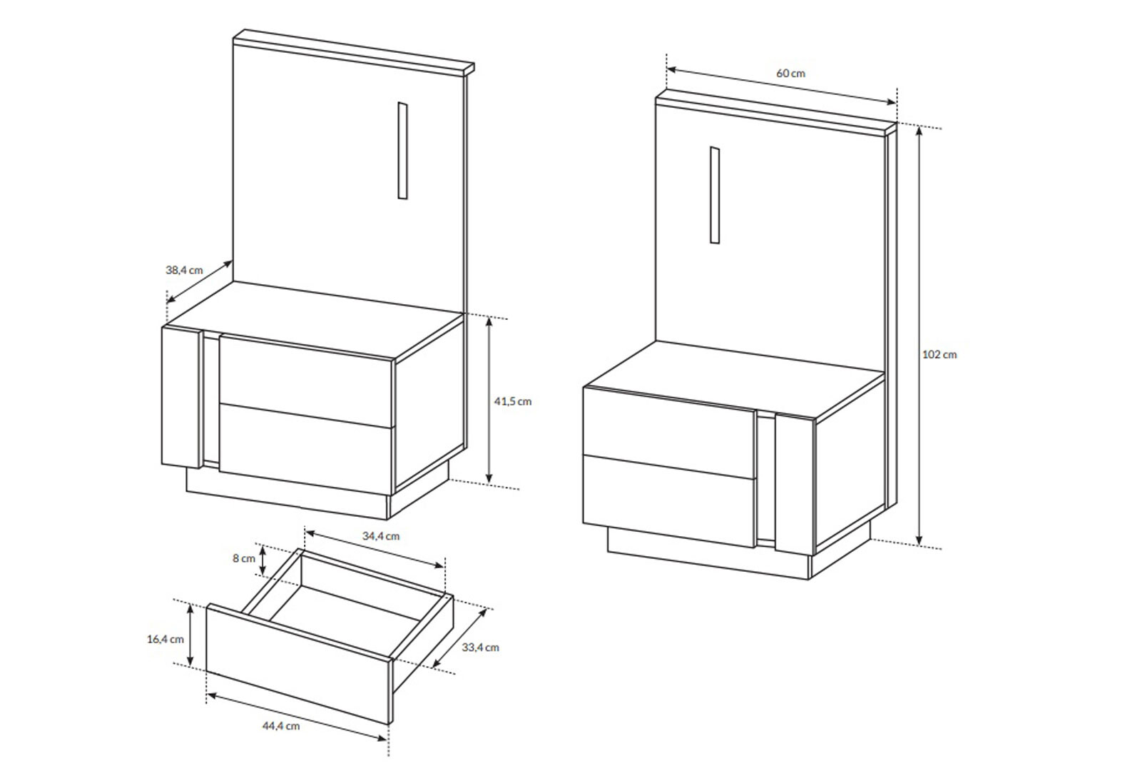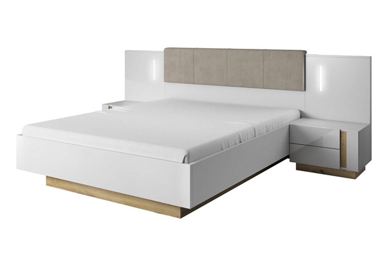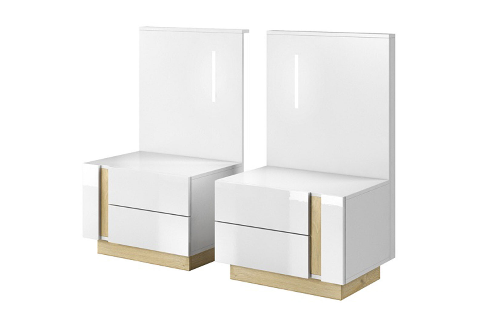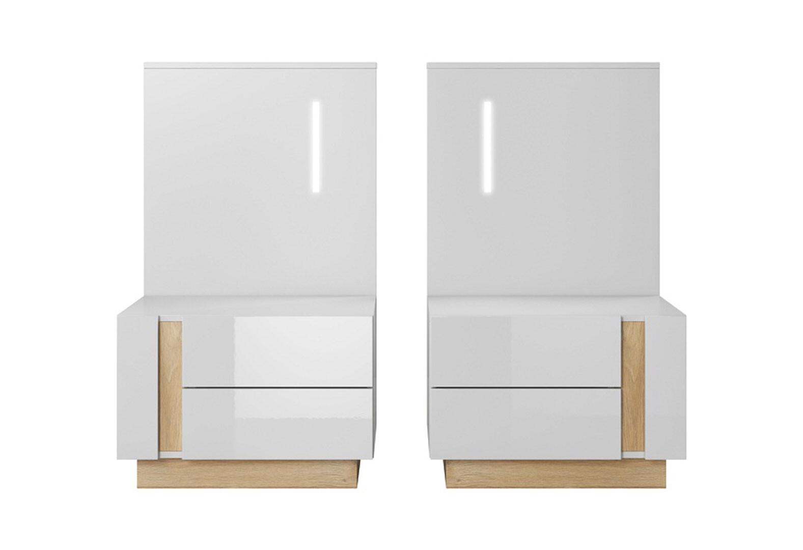 - Тумби приліжкові Perfect Home Арко / Arco з LED з 2 шухлядами 60 см, білий глянець / дуб грандсон