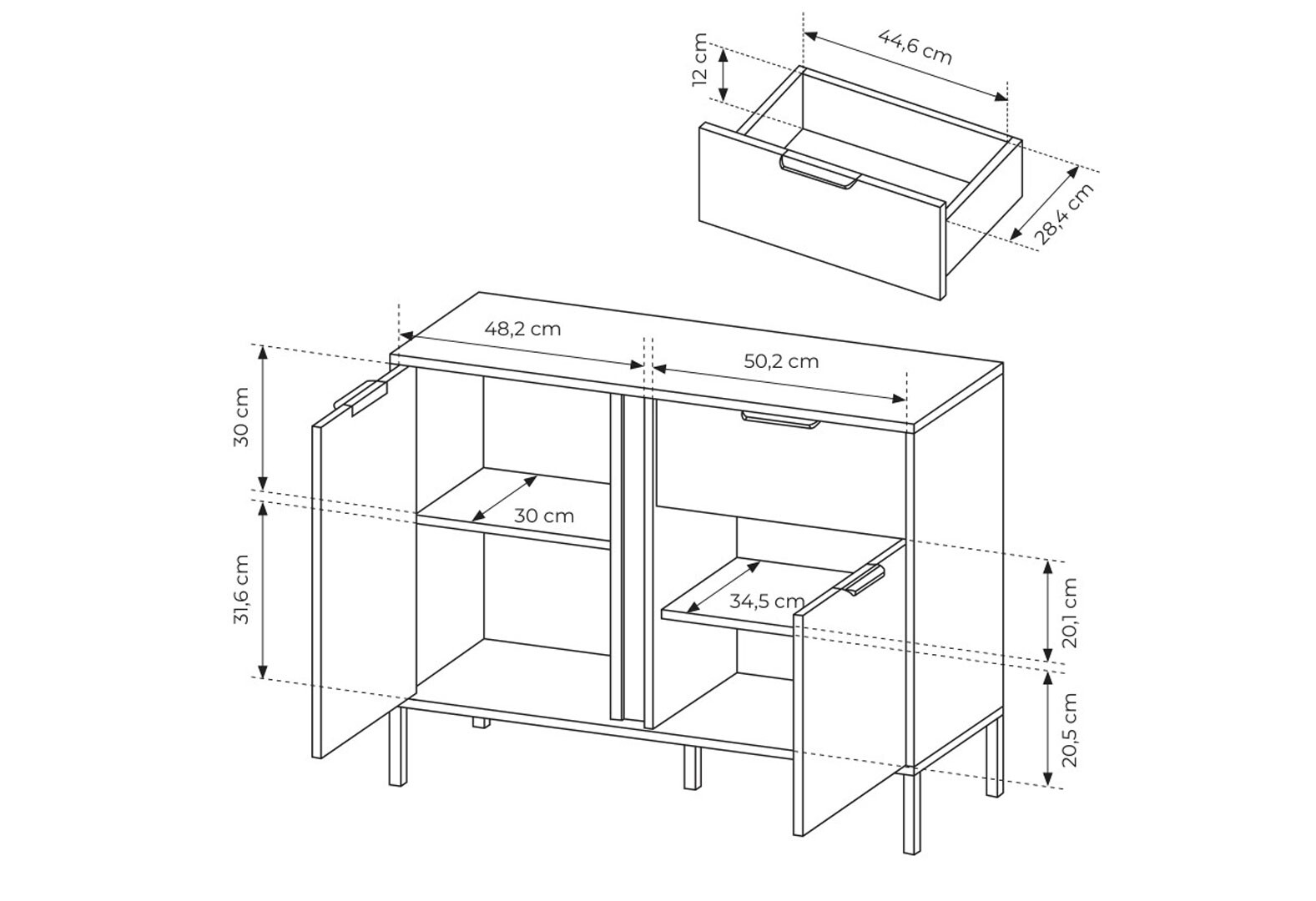 Комод Perfect Home Ларс / Lars 2-дверний з шухлядою 104 см, антрацит