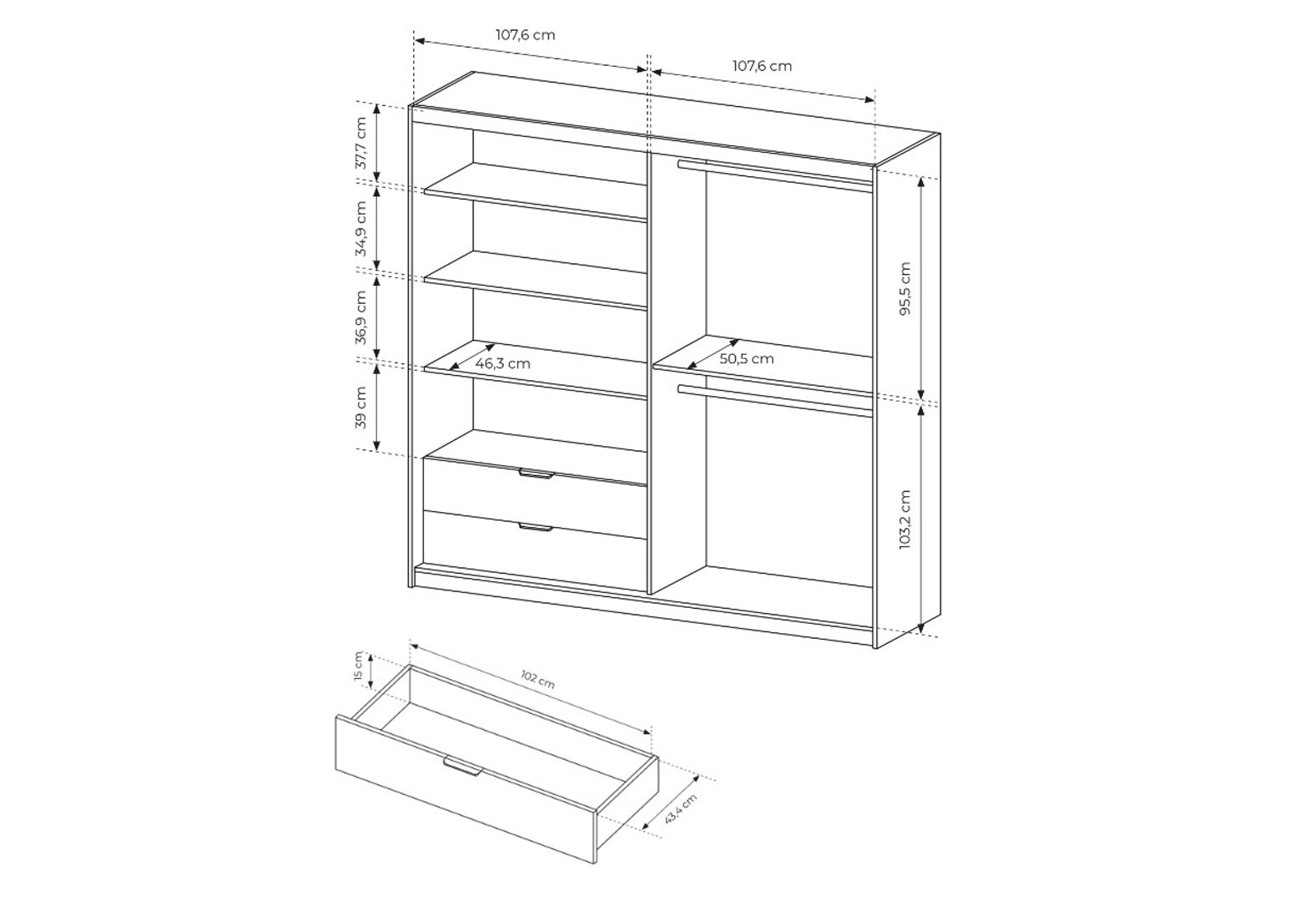 Шафа Perfect Home Таллі / Tally 4-дверна з 2 шухлядами 220 см, дуб артизан / антрацит