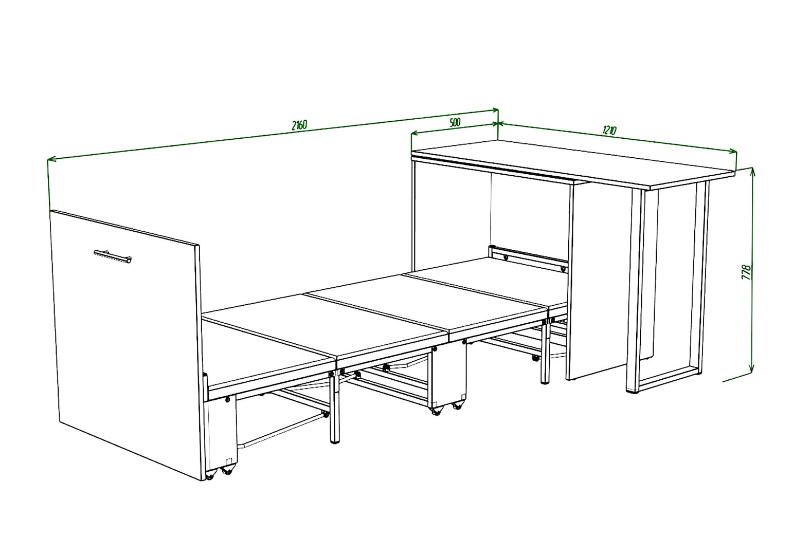 Зображення 5 - Ліжко-трансформер Knap Knap Sirim / Сірім-D (3 в 1) 80х200 см зі столом, венге